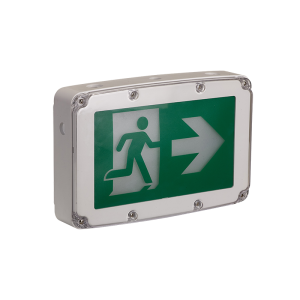 Wet Location Running Man LED Sign & Emerg Combo, Thermoplastic ABS Hsg, 120/347V, Super Bright SMD 2X1.5W, 120 Min Battery Back-up