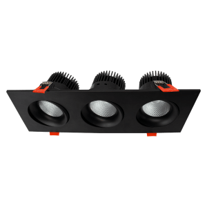 Square 3-Head Regressed Gimbal | 36W | 27/30/35/40/50K Selectable CCT | 1800 lm | 120V | Black Finish |